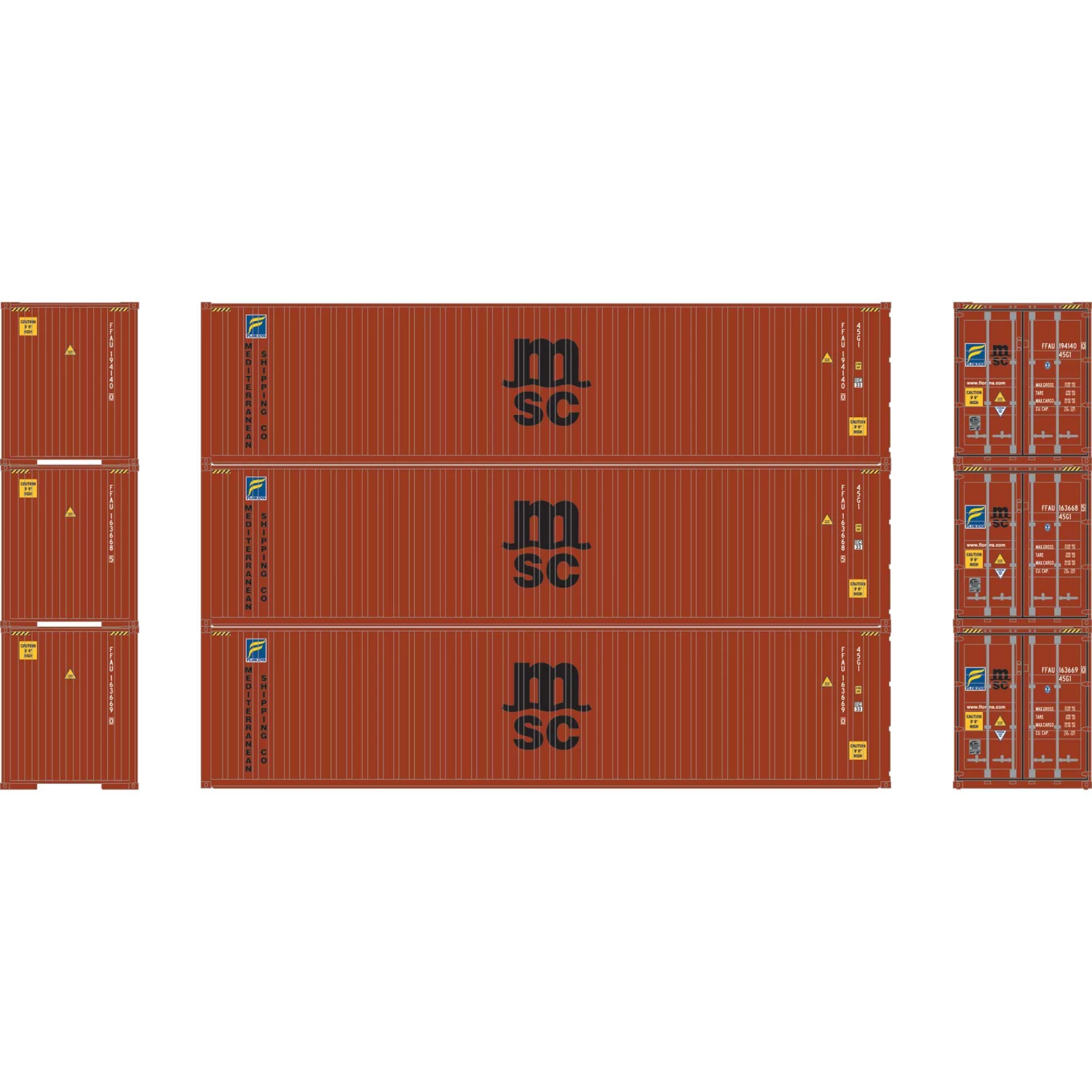 Budget π Athearn N 40′ Corrugated HC Container, MSC/Florens #2 (3) π